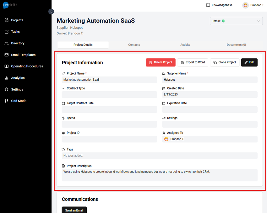 And finally, add the rest of your important details after your project is created (This is also where your custom fields show up):