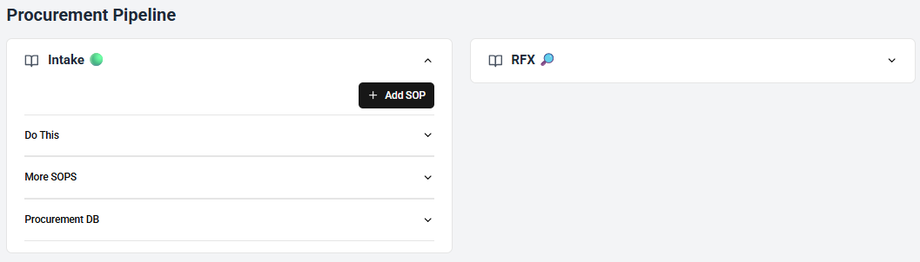 And, when all else fails and you've filled your second procurement brain with all the wisdom and instructions, you can easily search for keywords and subjects in the top search bar and drop downs will expose all the SOPs that match.